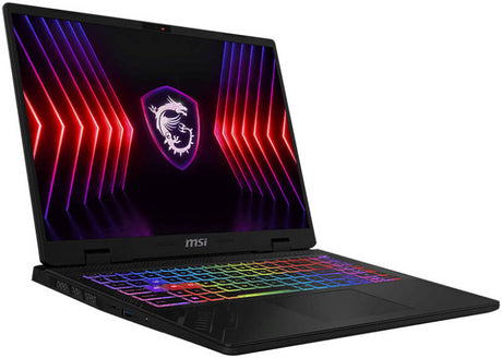 The MSI Crosshair 16 HX D14VGKG is a high-performance gaming laptop designed for gamers seeking power and portability. Equipped with the Intel Core i7-14650HX processor and NVIDIA GeForce RTX 4070 Laptop GPU, it delivers exceptional performance for the latest games and demanding applications. The 16-inch FHD+ display with a 144Hz refresh rate ensures smooth and immersive visuals, while 16GB of DDR5 RAM and a 1TB NVMe SSD provide ample memory and storage for multitasking and fast load times. Its sleek Cosmo Gray design adds a touch of sophistication to its robust build. Key Features Display : 16-inch FHD+ (1920×1200) IPS-Level panel with a 144Hz refresh rate for fluid and detailed visuals. Processor : Intel Core i7-14650HX with speeds ranging from 1.6 GHz to 5.2 GHz, ensuring smooth multitasking and top-tier performance. Graphics : NVIDIA GeForce RTX 4070 Laptop GPU with 8GB GDDR6 VRAM, supporting advanced graphics features like ray tracing for lifelike visuals. Storage and Memory : 1TB NVMe SSD for fast load times and 16GB DDR5 5600MHz RAM for seamless multitasking. Design : SteelSeries 24-Zone RGB keyboard with Anti-Ghost key technology, advanced cooling system with dual fans and multiple heat pipes, and a robust build for portability. Technical Specifications Model Number : CROSSHAIR1614057 Operating System : Windows 11 Home (MSI recommends Windows 11 Pro for business) Chipset : Intel HM770 Color : Cosmo Gray Resolution : 1920×1200 with a 16:10 aspect ratio Video Memory : 8GB GDDR6 Keyboard : SteelSeries 24-Zone RGB with Anti-Ghost key (99 Key) Speaker System : 2x 2W speakers with Hi-Res Audio and Nahimic support Webcam : 720p HD with shutter for privacy Networking : Gigabit LAN and Intel Wi-Fi 6E AX211 (2×2 ax) Bluetooth : Version 5.3 Ports : 3x USB 3.2 Gen1 1x USB 3.2 Gen 2 Type-C/DP (with PD 3.0 Charging) 1x HDMI v2.1 1x Audio Combo (1/8″) Battery : 4-cell (90Whr) Li-Ion Dimensions : 14.13″ x 10.49″ x 1.1″ Weight : Approximately 5.51 lbs User Benefits Enhanced Gaming Performance : Experience ultra-smooth gameplay with the high refresh rate display and powerful RTX 4070 graphics. Efficient Multitasking : Handle gaming, streaming, and productivity tasks effortlessly with the robust processor and ample RAM. Rapid Load Times : The 1TB NVMe SSD ensures quick boot times and swift game loading, reducing wait times. Immersive Visuals : The FHD+ resolution and IPS-level panel deliver vibrant and accurate colors for a lifelike viewing experience. Advanced Cooling : The dual-fan cooling system with multiple heat pipes maintains optimal performance during intense gaming sessions. Compatibility VR Ready : Supports virtual reality gaming experiences with the powerful RTX 4070 GPU External Displays : Connect to external monitors via HDMI v2.1 or USB-C for expanded viewing options. Peripheral Support : Compatible with a wide range of gaming peripherals, including headsets, keyboards, and mice. Networking : Supports Wi-Fi 6E and Gigabit LAN for fast, low-latency online gaming and streaming. Included Items MSI Crosshair 16 HX D14VGKG Gaming Laptop 240W AC Power Adapter User Manual Warranty Card